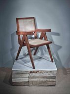 STRUCTURAL FEATURES: Designed by Swiss architect and designer of furniture Pierre Jeanneret during his stay in Chandigarh in the 1950s, the Cross Easy Chair is an example of the sculptural albeit elegant furniture of the Modernist period in postcolonial India. The chair is designed during this period, along with a host of other furniture for the city’s administrative buildings. The sleek structure of the chair – slightly elevated armrests, a cane backrest and seat, and sharp, inverted V-shaped legs -- is manifest of a strong western Modernist design with a colonial touch. Jeanneret worked on furniture design independently as well as with Corbusier. His way of working involved experimentation, and in his own words, was “always a bit anarchic”.