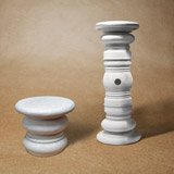 The design of India Urban’s pillar pods seeks inspiration from the structural and stylistic features of the temple architecture of southern India, prominent during the Chola reign. Made out of GFRP (Glass Fibre Reinforced Polymer), the pieces are lightweight and nifty, and replete with a bold, imposing bulbous form. One of its key features is its versatility — the pillar pods can be separated and then used as a form of seating or as a side-table. Alternatively, they can be inverted to be used as holders or containers for plants and flowers.