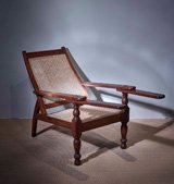STRUCTURAL FEATURES: The plantation chair (or planter’s chair) is commissioned by the British during their rule in India for their own use as well as to be shipped to Britain. They would soon become a common sight at waiting rooms of railway stations in India. Traditionally made out of mahogany, rosewood or teak, it has a dense, low seat woven out of rattan or cane, and a reclining, tilted back. Designed for comfort, it is called the easy chair or the chaise longue. It is composed of two long arms, the lower section of which swivels to turn and extend into footrests, allowing the user to put their legs up to sleep. It continues to be a popular fixture in most spacious homes, libraries and clubhouses in present-day Mumbai, Kolkata and Goa, and lends itself well to the indoors as well as the outdoors.