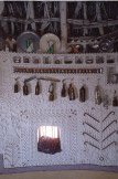 In the homes of Kutch, Kathiawad and far western Rajasthan embossed geometric patterns are made using organic material and mirror is inlaid into the design. The final visual effect mimics the abla-embroidered textiles of the region.